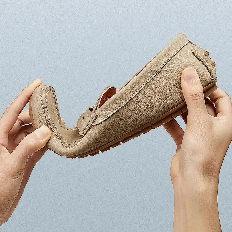 高跟鞋的鞋跟角度並非單純追求視覺效果,而是經過計算使重心落在足跟正上方,配合前掌處的微凸支撐設計,分散壓力避免疲勞;平底鞋則會在鞋墊足弓位置加入 0.5cm 的彈性凸起,行走時隨步伐自然回彈,如同給雙腳裝上 「隱形支架」。這種對人體工學的極致追求,讓鞋履不再是束縛,而是與雙腳協同工作的 「第二層皮膚」。